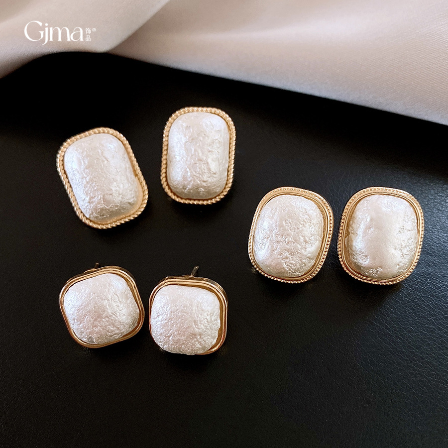 銀の針のフランスの幾何学の四角形の綿の真珠のピアスの女性の優雅な気質の百合のイヤリングの軽い豪華な高級感の耳飾り