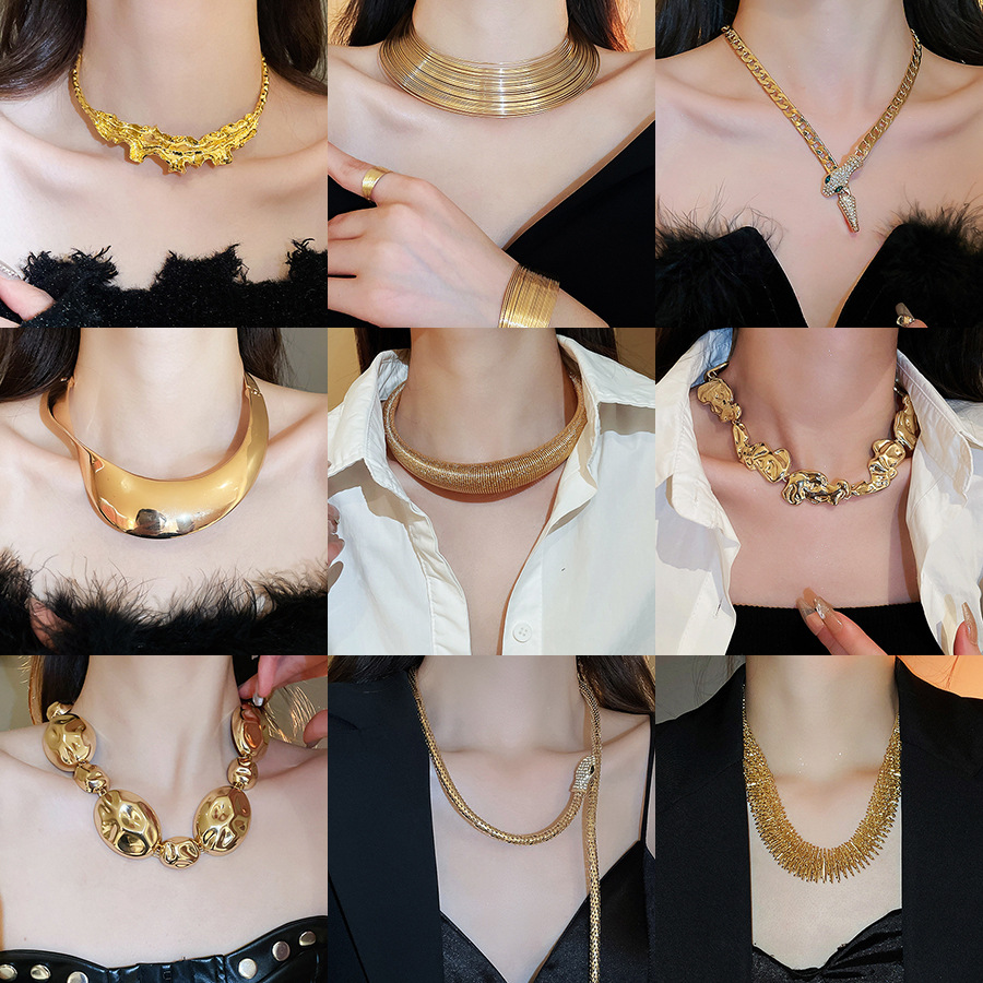 欧米の大げさな金属風のしわの不規則な幾何学の蛇の形のネックレスのクロスボーダーのファッションの鎖の骨のチェーンの高級感のアクセサリー