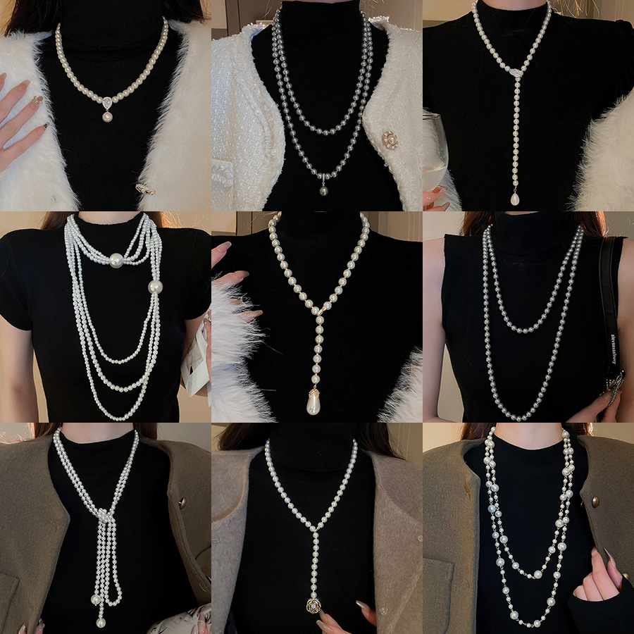 フランス風の気質の超ロングタイプの真珠のネックレスのファッションの潮流は百合のセーターのチェーンの復古の高級感の項は卸売りの女性を飾ります。