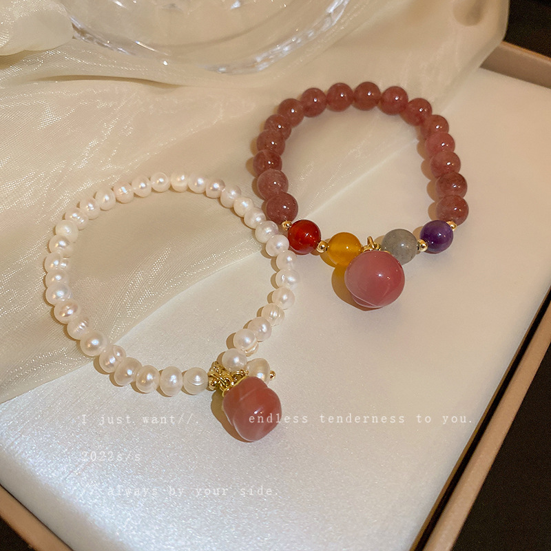 気質淡水真珠水蜜桃石ブレスレットシンプルファッションビーズ手串ネット赤百合ファッション手飾り女