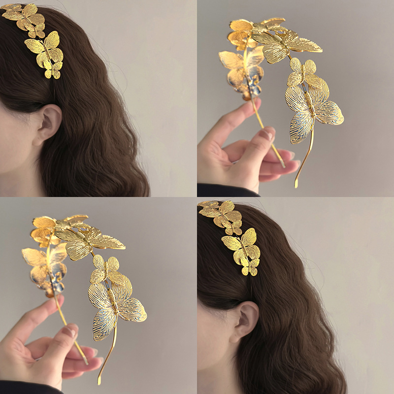 欧米の金属風の蝶のカチューシャの小さい大衆の個性のデザイン感のカチューシャは誇張してファッション的な百合の通勤の髪飾りの卸売りをします。