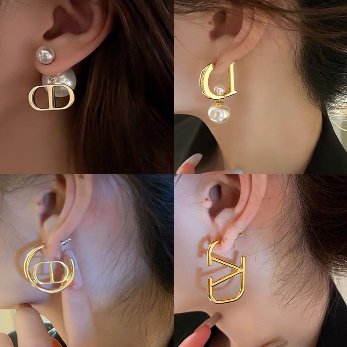 銀針欧米ファッションジルコン文字豚鼻真珠イヤリング気質通勤ピアス軽贅沢高級感耳飾り
