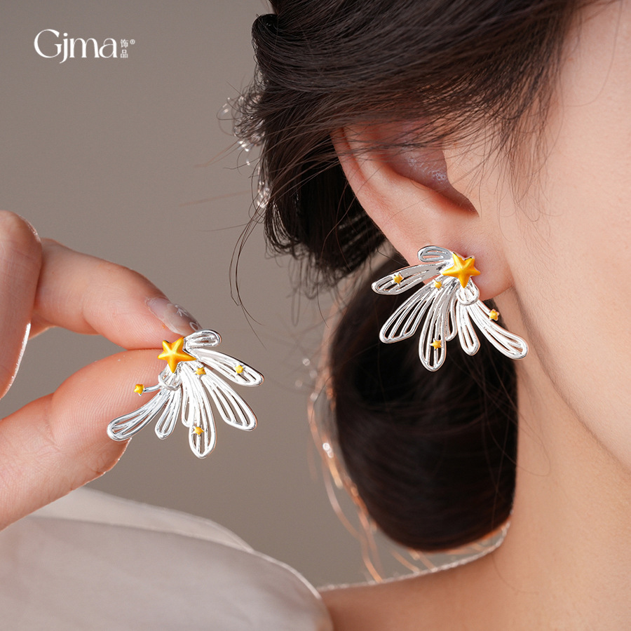 銀の針のファッションの冷たい風の滴る油の透かし彫りの翼のピアスの女性の個性の設計のイヤリングの大衆の高級感の耳飾りの女性