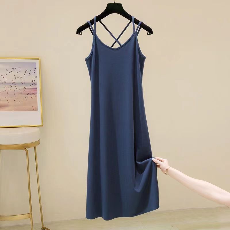 モーダルリブ綿の中長のストラップのベストスカートの女性の大きいサイズはゆったりしています。