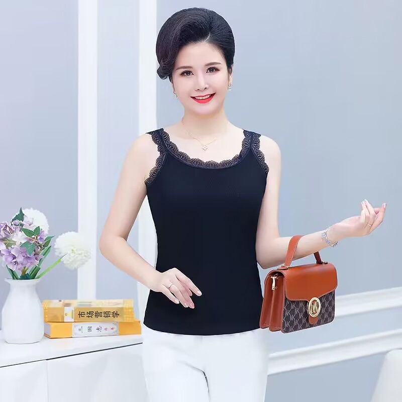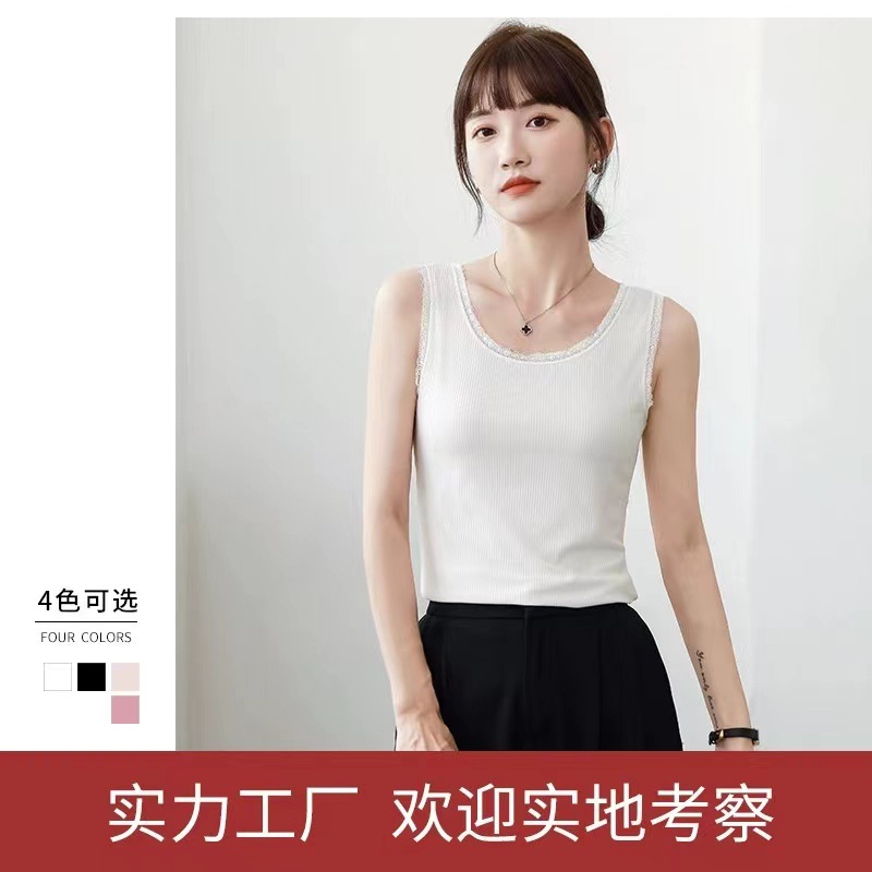 モーダル夏ニットスリングベスト女性レースの縁の大きいサイズの修身外着のインナーシャツのベスト