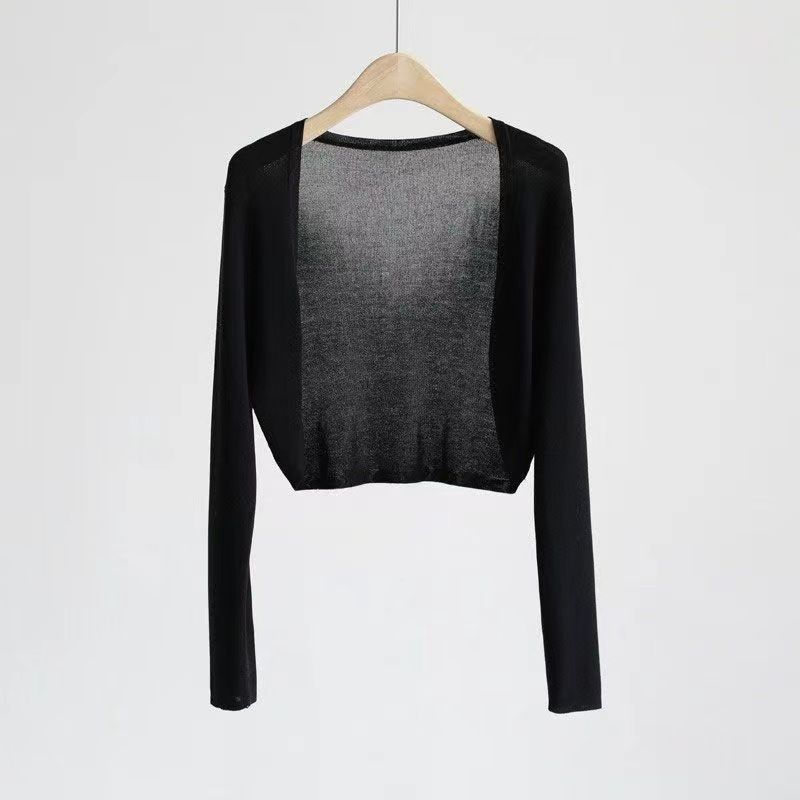 夏のアイスカーディガンの女性の日焼け止めストール夏の薄いタイプの外に短い長袖のエアコンのシャツの肩のブラウスの上着を掛けます。