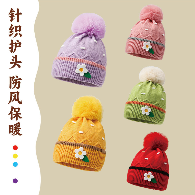 新型保温子供帽子女の子毛糸帽子超萌えニット帽子子供韓国版男の子かわいい秋冬毛玉