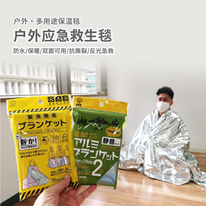 日本屋外生存保温ブランケット救急ブランケット両面銀色日焼け止めブランケット簡易携帯緊急生存装備