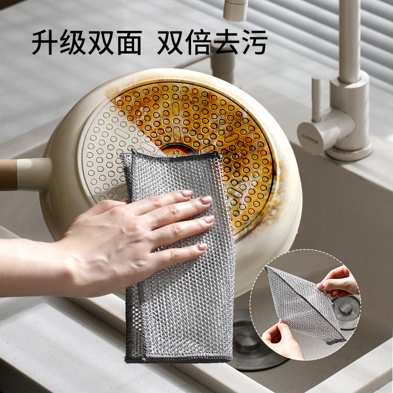 国境を越えて人気のキッチン雑巾ブラシ鍋調理台の金属糸皿洗い布汚れ除去油二重銀糸清潔布