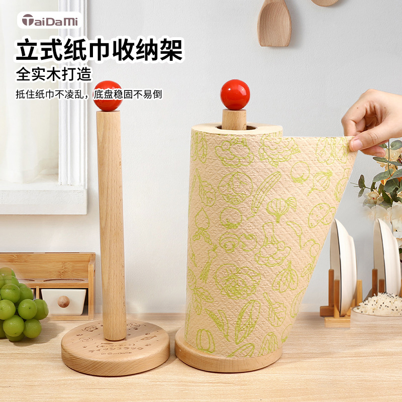 日本の台所のティッシュ棚の木製のロール紙の棚は穴を開けないで台の立式の鮮度保持袋の収納棚を置きます。