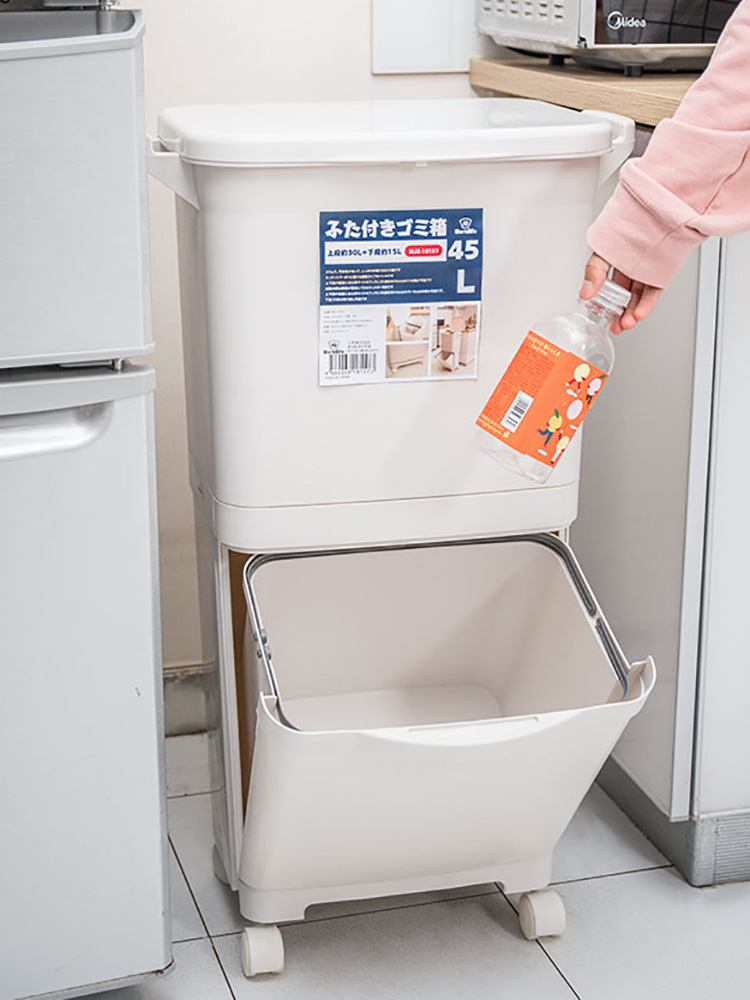日本の超大型家庭用分類ゴミ箱乾湿分離蓋付き大型キッチン収納二重創造ゴミ捨て筒