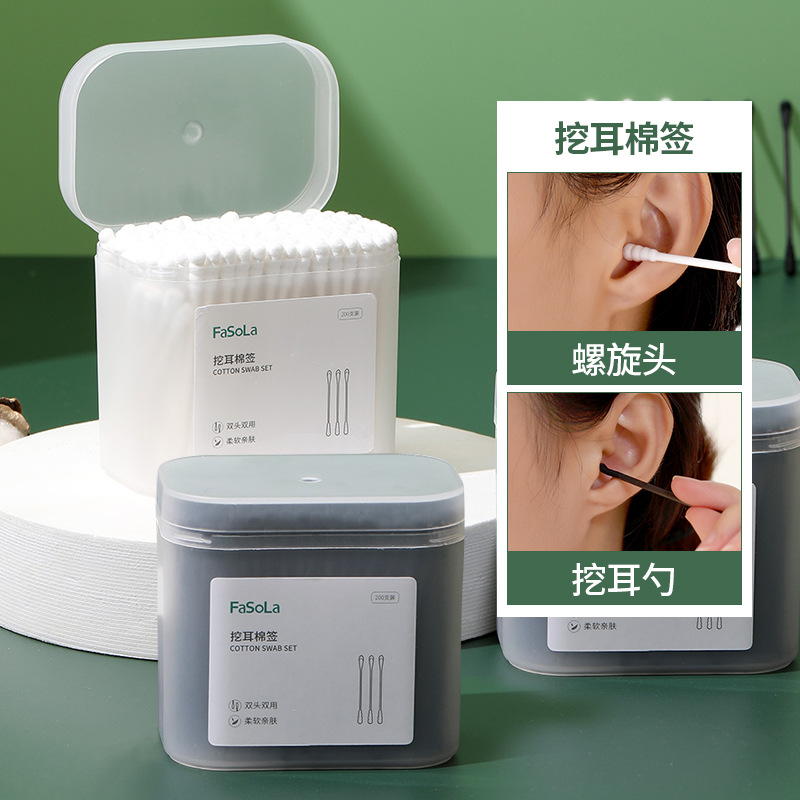 Fasola綿棒は耳を抜く大人の黒いスパイラル頭の大人の耳を切る多機能で綿棒200をきれいにします。