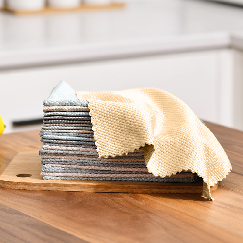 魚鱗雑巾は油汚れの皿洗いタオルを厚くして台所の家事を清潔にする雑巾車用ガラス雑巾3枚