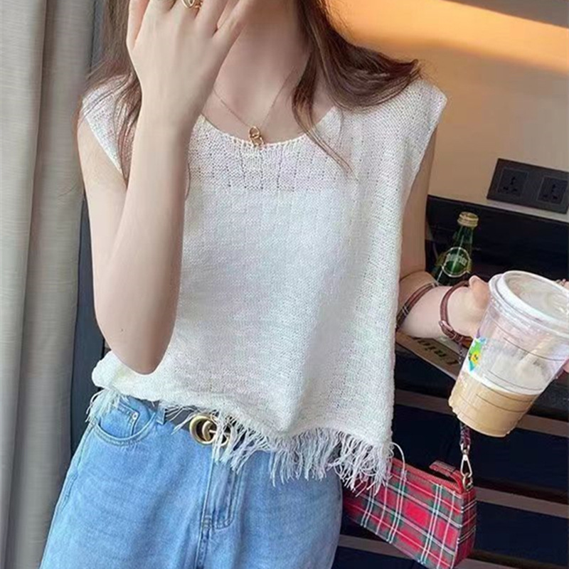 透かし彫りの網の丸首の上着の女性の夏の薄いタイプの外はゆったりしていて、やせています。
