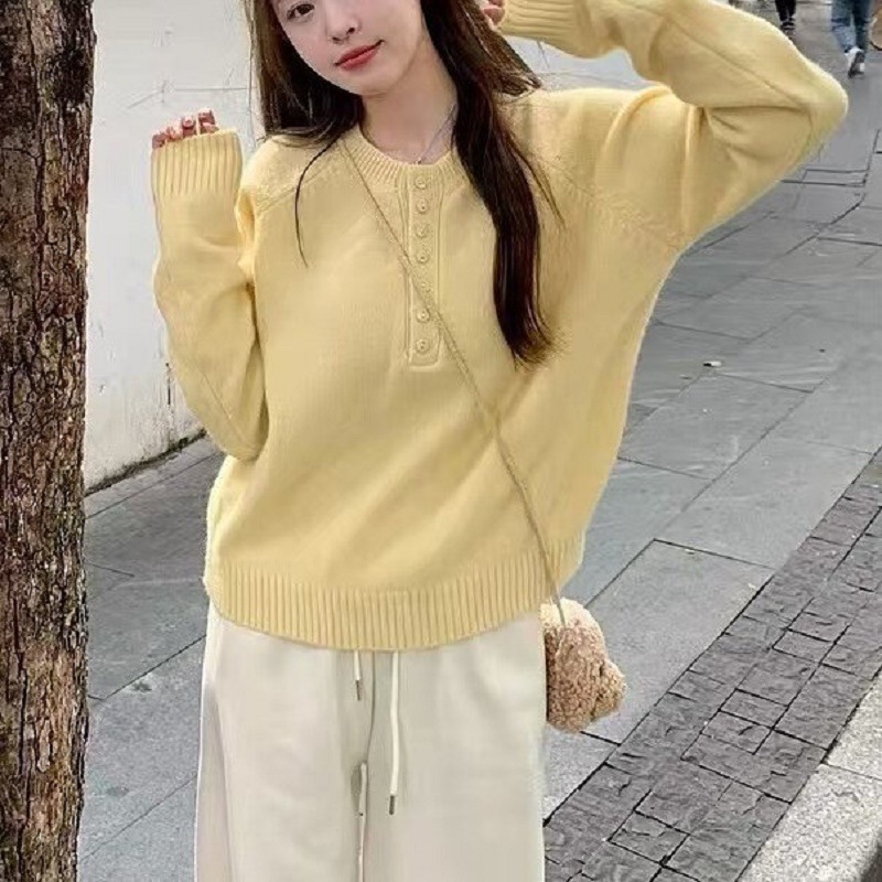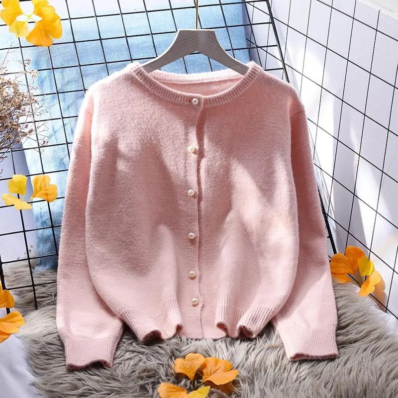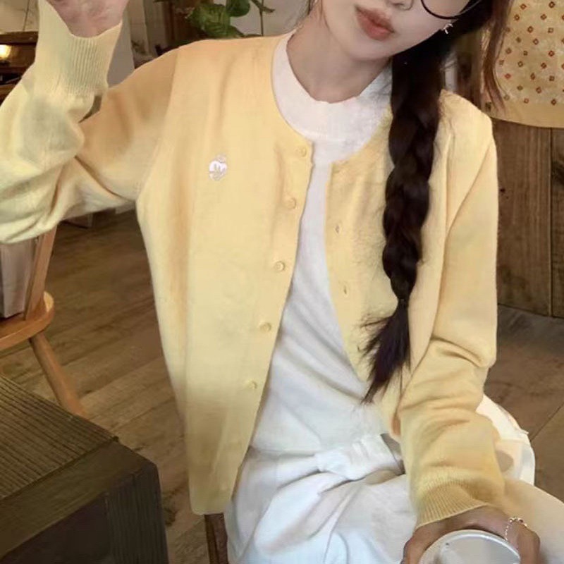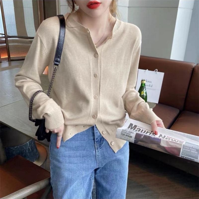 韓国風ラウンドネックニットカーディガン レディース 春秋新作 ゆったり 外出着 長袖 万能 おしゃれ セーター ジャケット トップス トレンド