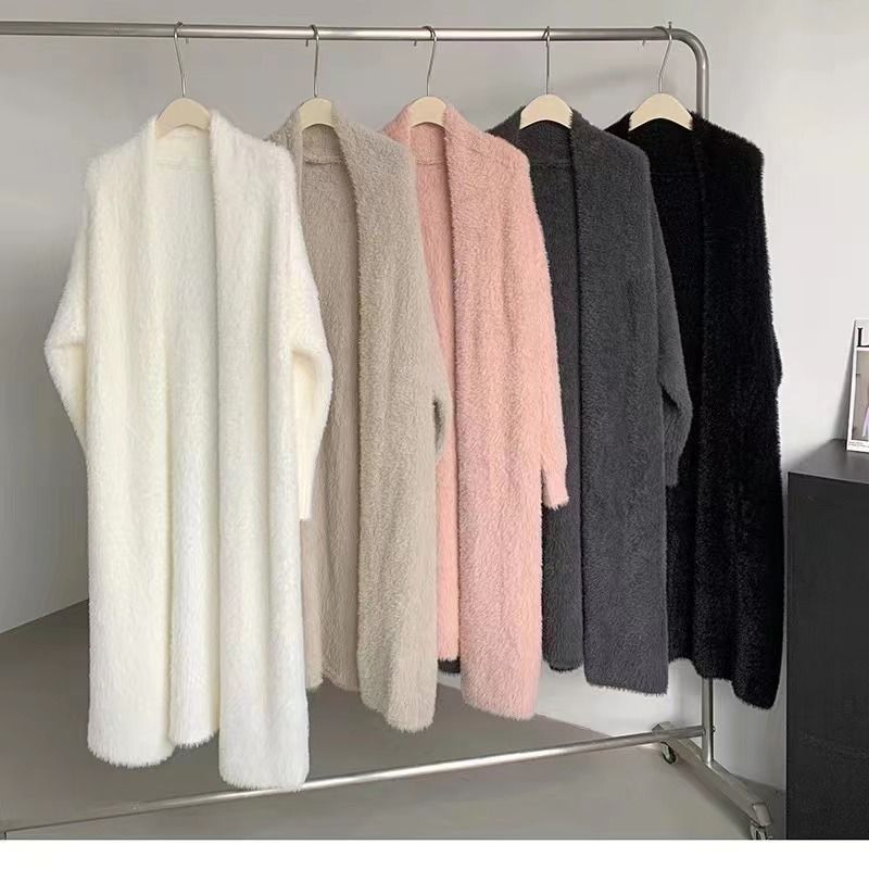 セーターの女性の秋冬の新型の怠惰な風はミンクの毛の純色のゆったりしているメリヤスのカーディガンのコートの気質の長いタイプのコートをまねます。