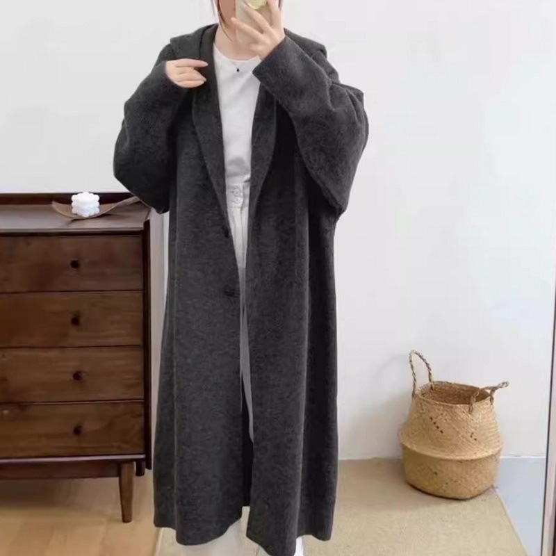 ニットのカーディガンのコートの女性の秋冬の新型の怠惰な風の韓国版の復古の柔らかいモチとしたゆったりした長いタイプの帽子のセーター