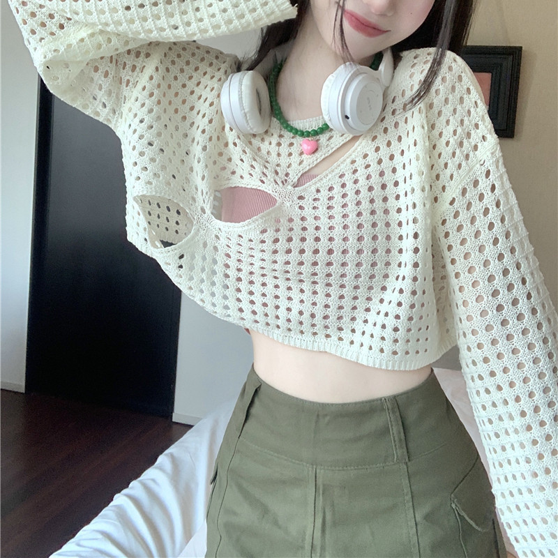 透かし彫りのニットの女性の夏の新型の外はブラウスのデザイン感を着ます。