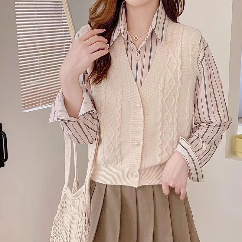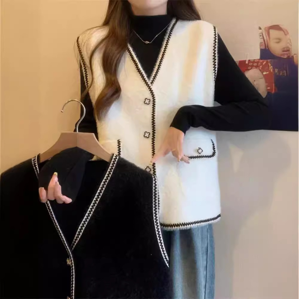 小香風メリヤスカーディガンの女性vネック春秋の新型の外はゆったりしていて、やせているミンクのセーターのベストの女性が見えます。