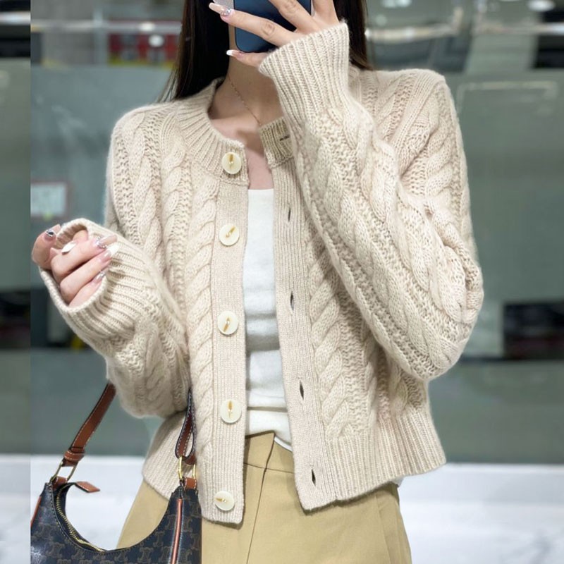 セーター女性秋冬新作高級感レトロコットンニットカーディガン丸首長袖コートファッションカジュアル外付け