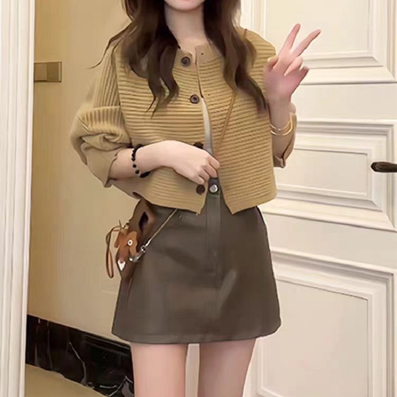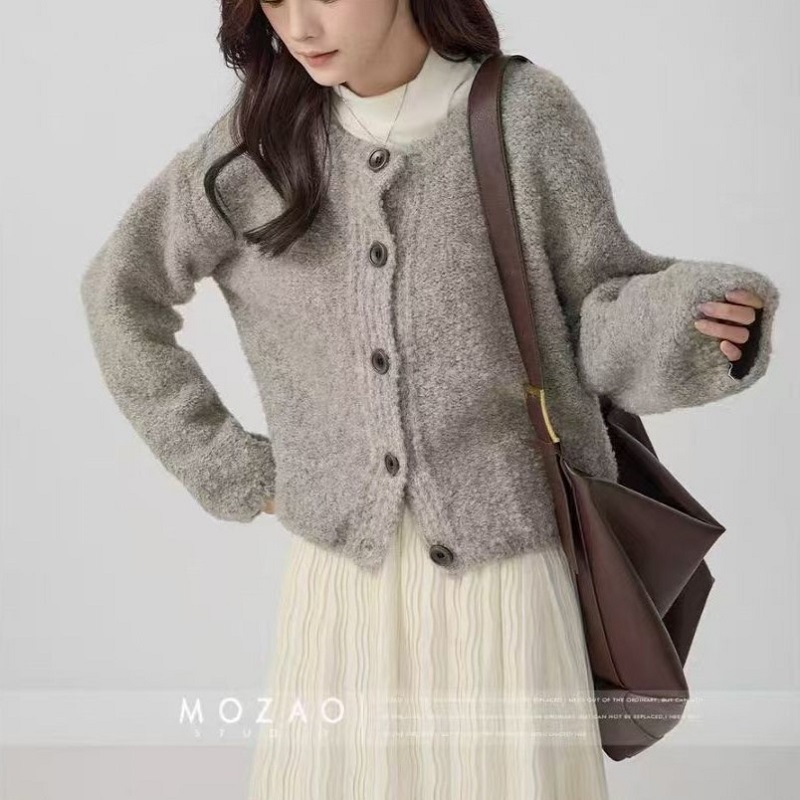 ニッチなソフトでワックスのようなスリムな秋冬の新しいルーズレイジースタイルラウンドネックニットカーディガンジャケット小柄な人向けのカジュアルトップ