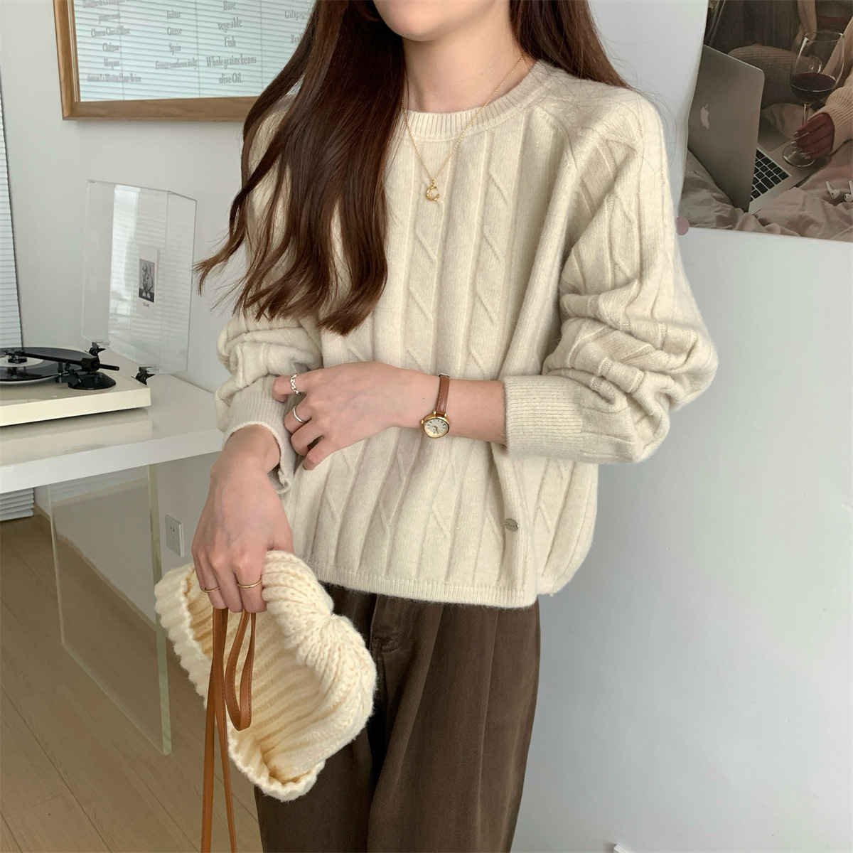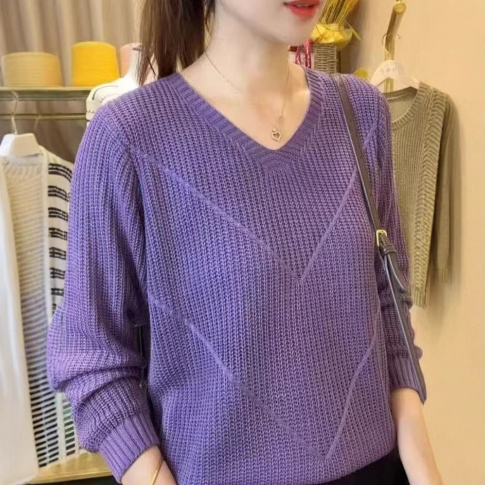 ニットセーター春と秋の女性の新しいスタイルのレイジースタイルハイエンドラウンドネックルーズ痩身プルオーバーニットセータートップス女性用