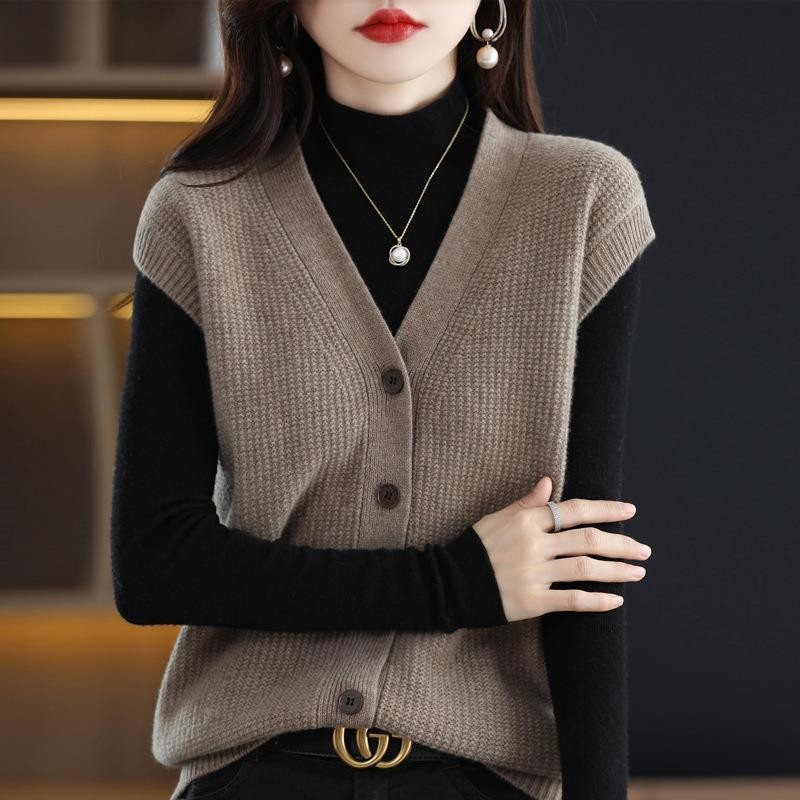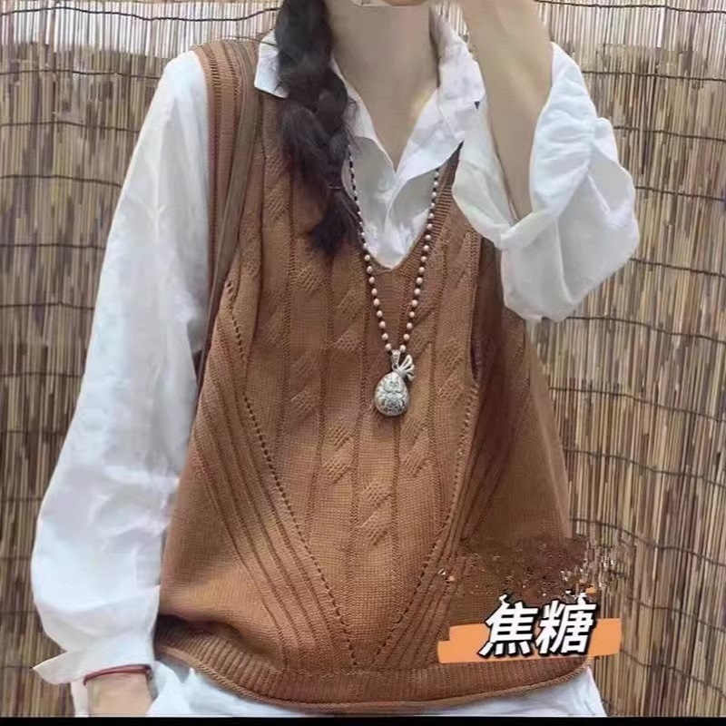 女性が外で着るニットカーディガンベスト、高級秋冬新作レイヤード、ゆったり万能、ゆったりシンプルセーターベスト