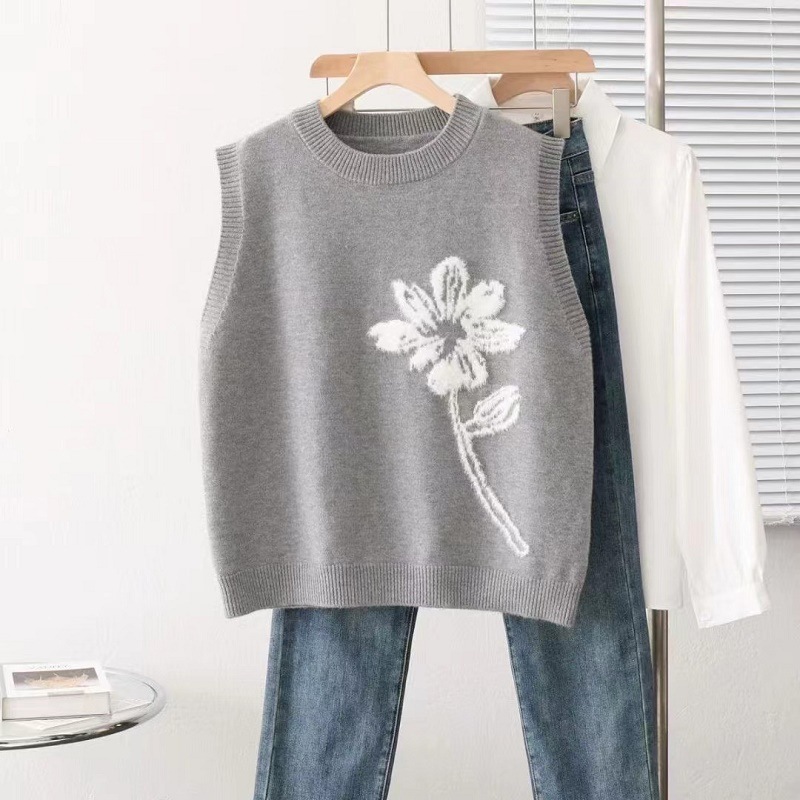 春と秋の新作カレッジスタイルニットベスト、ファッショナブルでシンプルなレディースノースリーブベスト、多用途ジャカードラウンドネックトップ