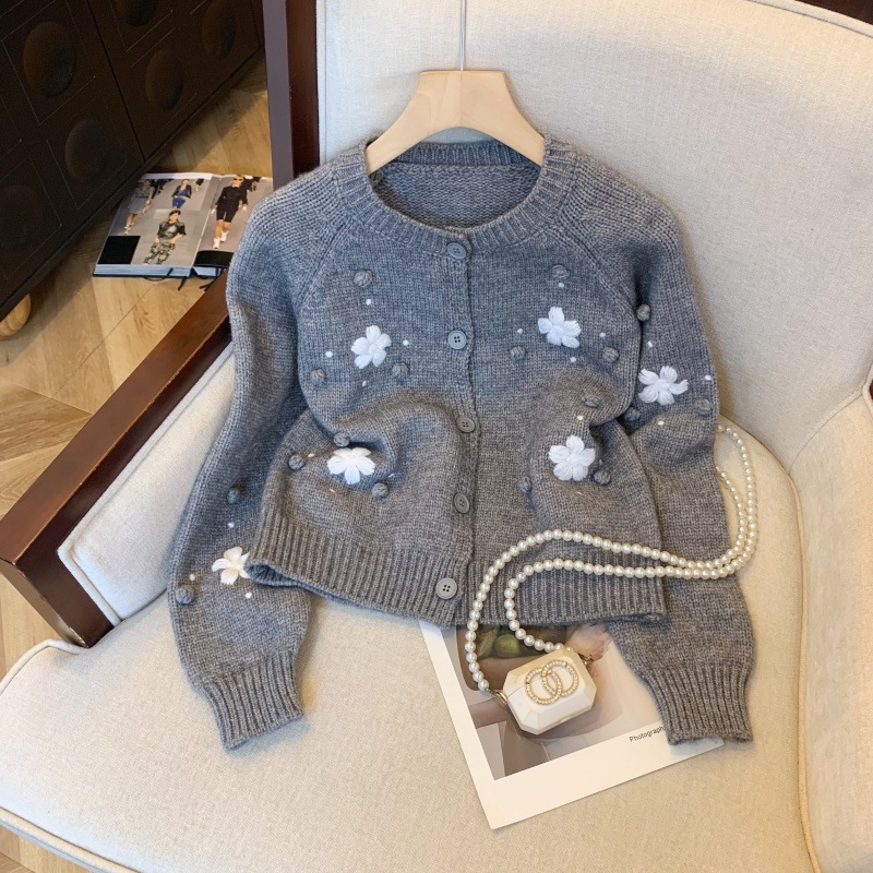 秋冬の女性用クロスボーダーセーター、新しい高級カーディガン、花刺繍、女性用韓国風アウターニットジャケット