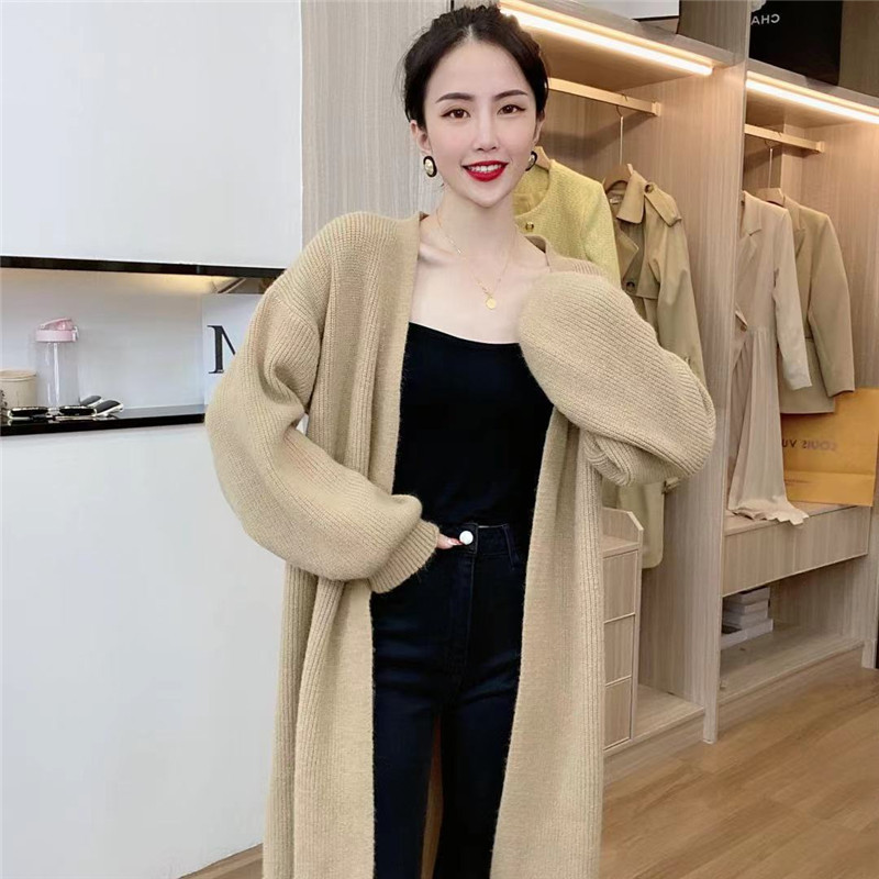 長いスタイルのコートの女性秋冬の新型の怠惰な風の高級感の純色はゆったりしていて、やせて見えるニットのカーディガンの女性です。