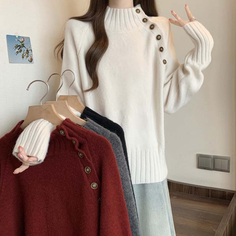 クロスボーダー秋と冬の新しい韓国スタイルの女性のハーフタートルネックニットセーター大きいサイズ長袖多用途カジュアルトップジャケット女性用