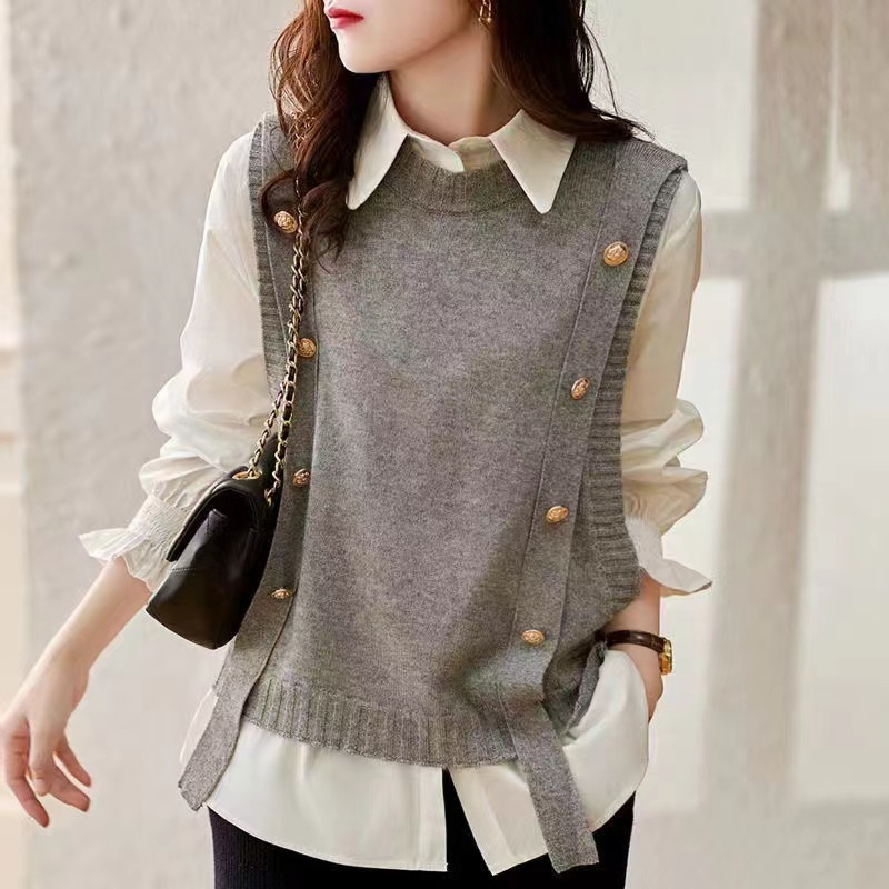 ニットベスト新しい女性のアウターウェア優しいスタイルカーディガンレイヤードノースリーブベストカラーボタン春と秋の女性のトップス