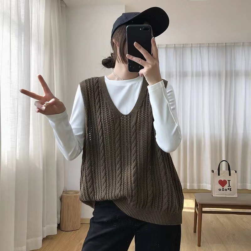 Vネックニット馬甲は秋冬の新型減齢韓国版を着ています。