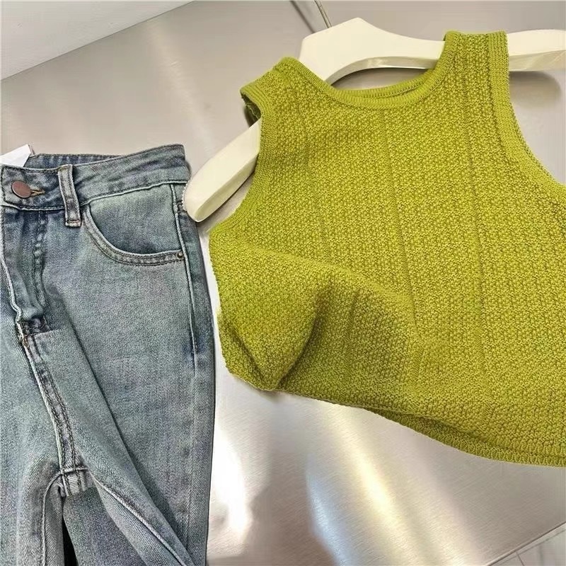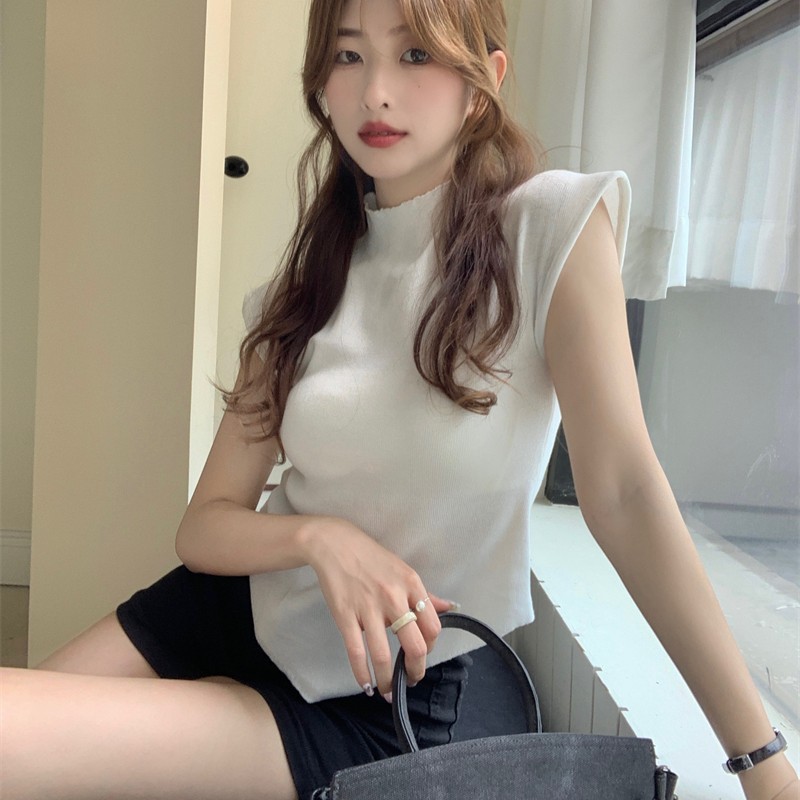 優しいニットベスト女性夏の新型ノースリーブギャルは短い純色のシャツの上着を修理します。