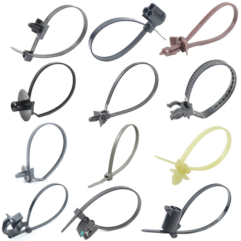 ナイロンロックタイ自動車バイク多目的セルフロックタイベージュ黒異型