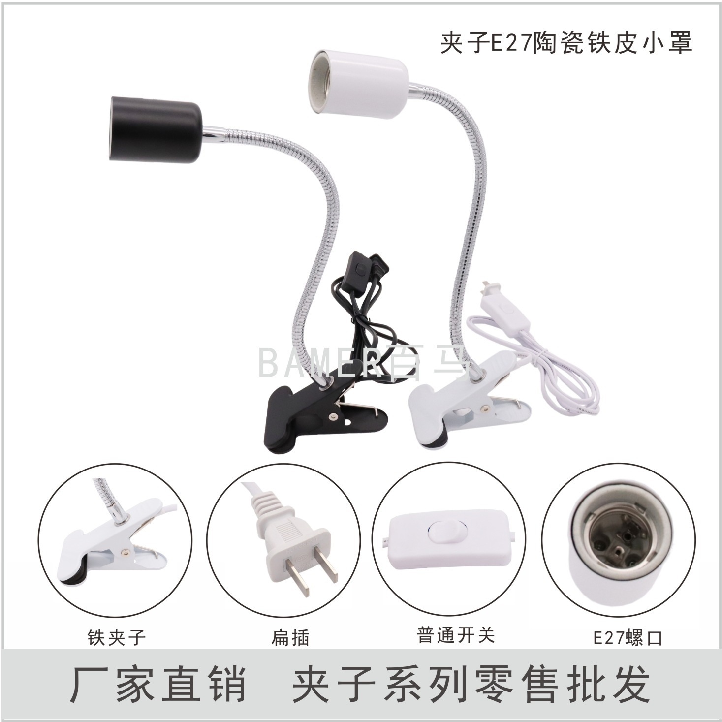 鉄クリップ万能ランプヘッドスタンドクリップ万能管変换ランプヘッド10センチ管セラミックインターフェース30cm