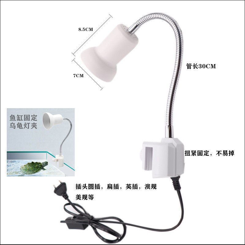 澳規黒色爬虫類灯架ペットランプ烏亀灯日焼けバックランプ蛇竜類360度万方向太陽灯クリップ