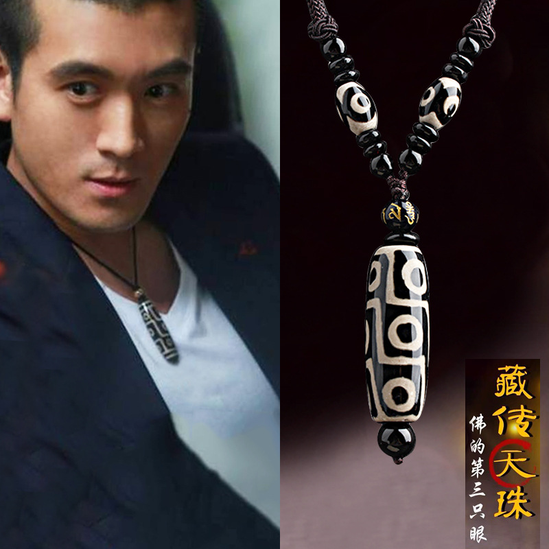 人気チベット式九眼天珠ネックレス男瑪瑙ペンダントレトロ個性毛衣チェーン民族風仏珠ロングタイプ掛け