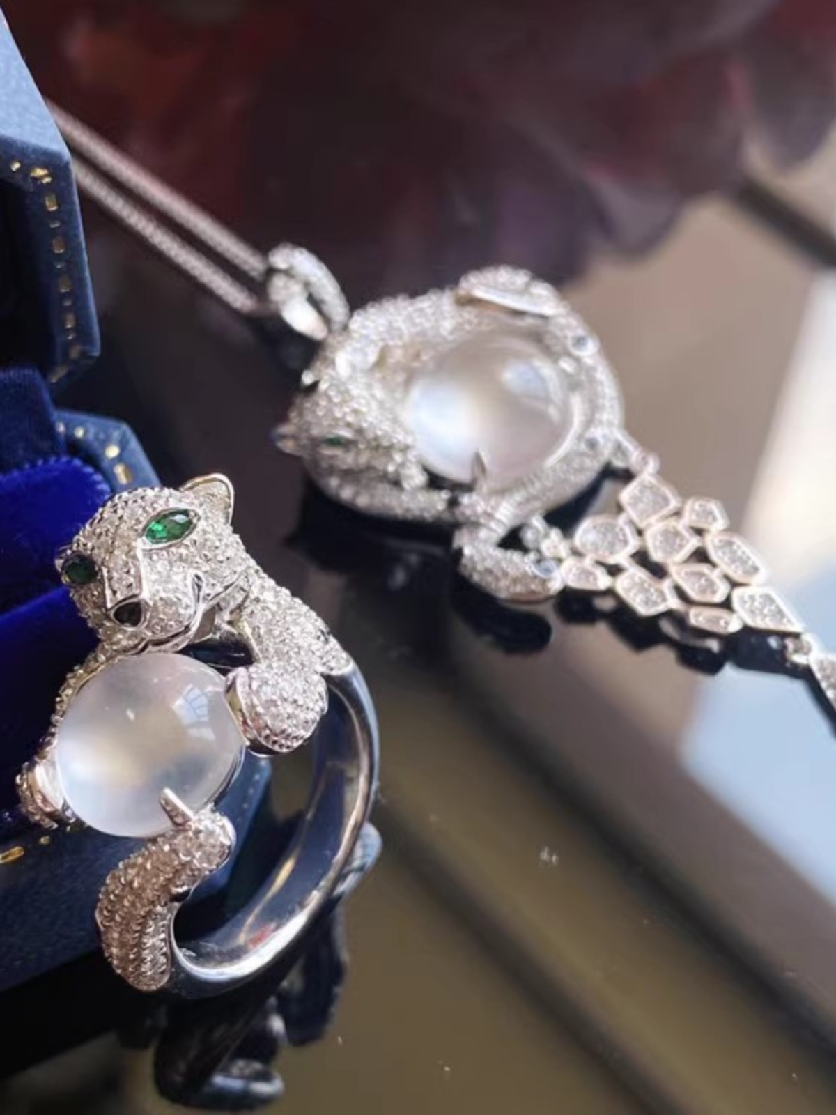 よく売れているヤングは天然の玉髄の水泡玉豹のペンダントのネックレスの瑪瑙豹の頭の指輪の軽い豪華な色の宝のカバーをまねます。
