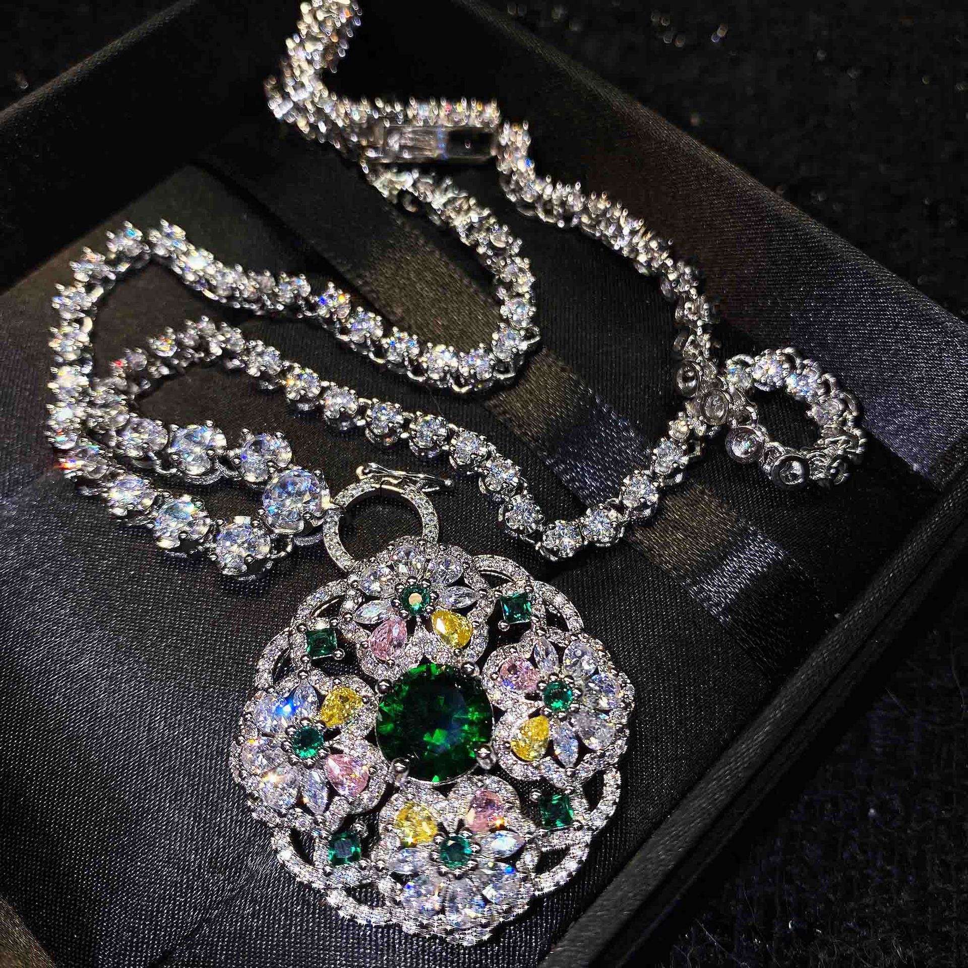 ヤング万能ネックレスメッキ18kプラチナ高級ジュエリー翡翠彩宝碧璽ペンダント共通ネックレス女