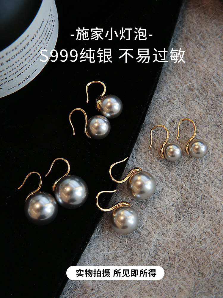 人気999銀施家真珠イヤリング女性イヤリングハイヒール耳フック高級感グレー真珠イヤリング