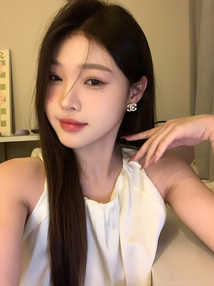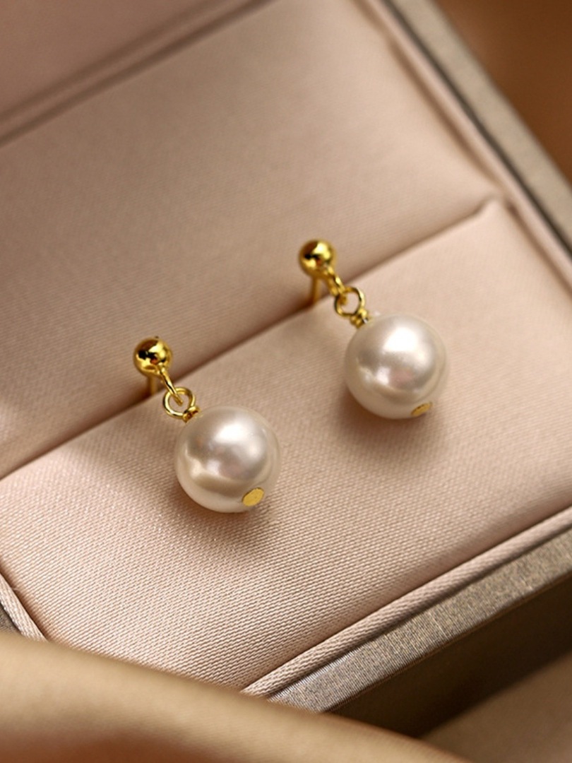 人気のある趙露思同金マントーは、光沢のある丸い真珠のピアスを持っています。