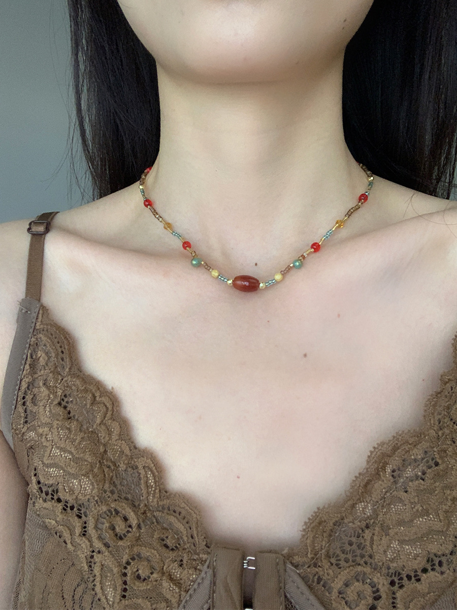 人気カラー宝石ビーズネックレス女性金2024新気質軽豪華鎖骨鎖小衆デザイン高級感