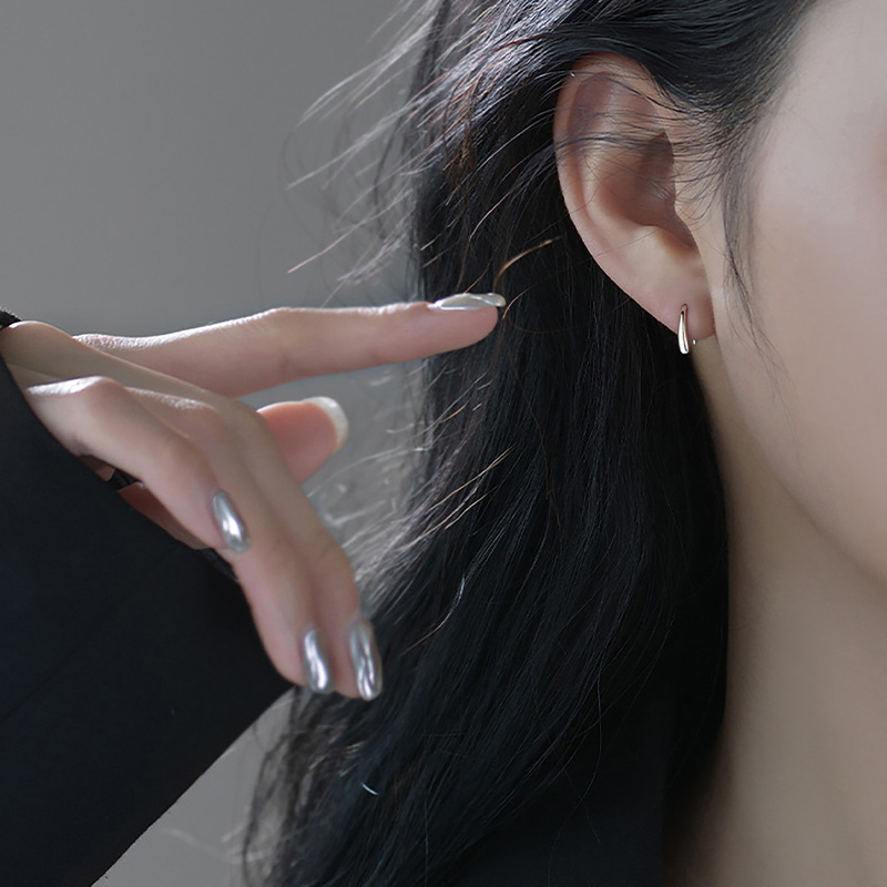 S 999通体純銀素輪イヤリング女性高級感冷淡風耳飾り2024新型爆合小衆耳輪