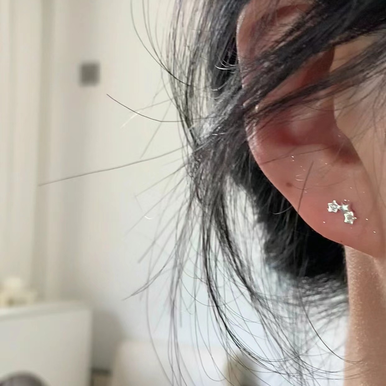 人気s999純銀針小砕星ピアス女子学生2024新型起爆イヤリング高級感養耳穴精緻