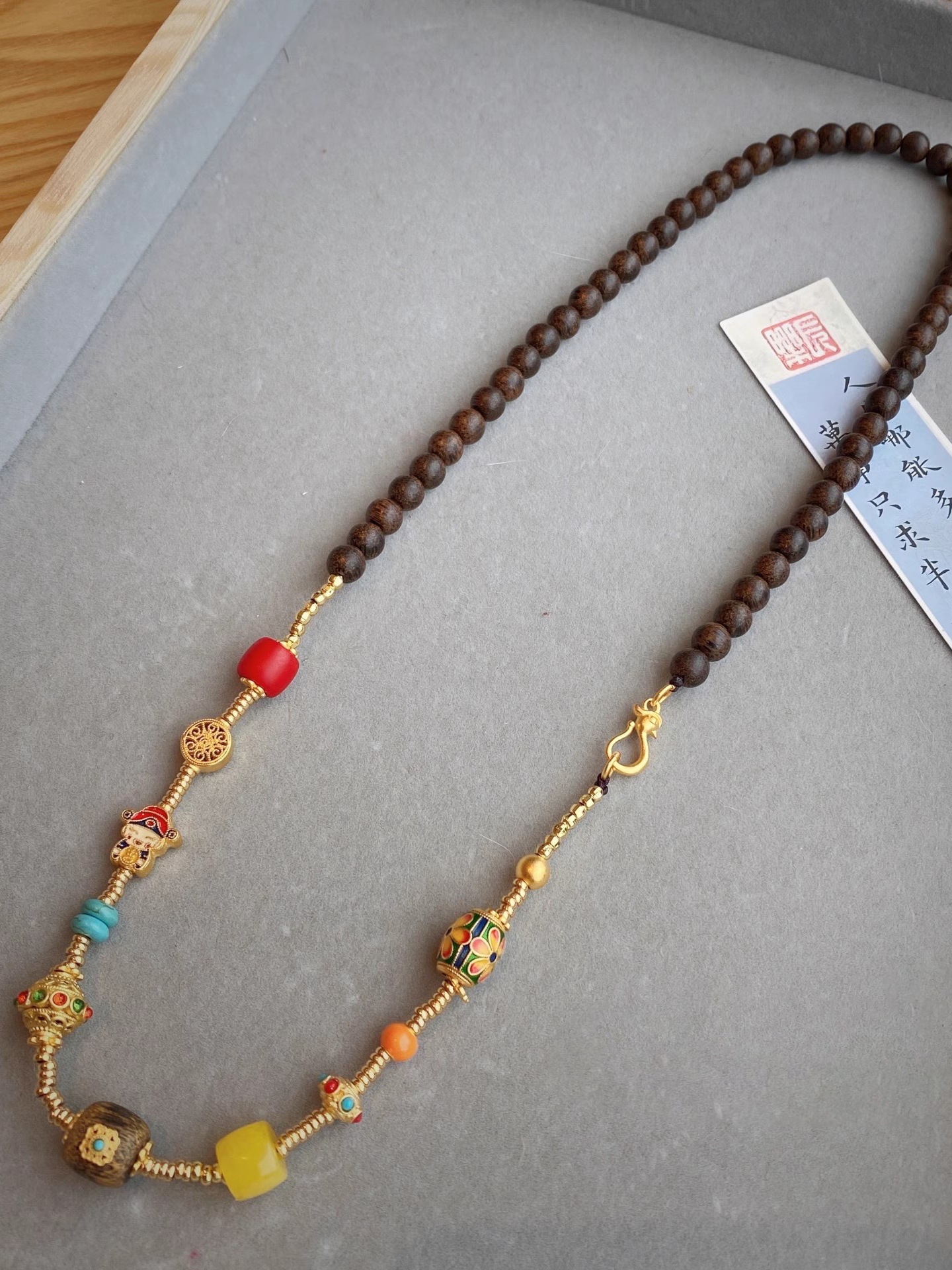 よく売れている沈香古法彩宝焼藍背雲ネックレス女性レトロ民族風多宝エナメル彩長型セーターチェーン