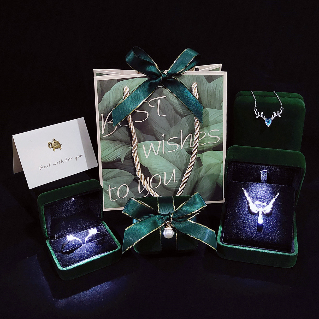 高級ledランプジュエリーケースシルク布ネックレスペンダント玉ブレスレットブローチ収納結婚指輪ケース