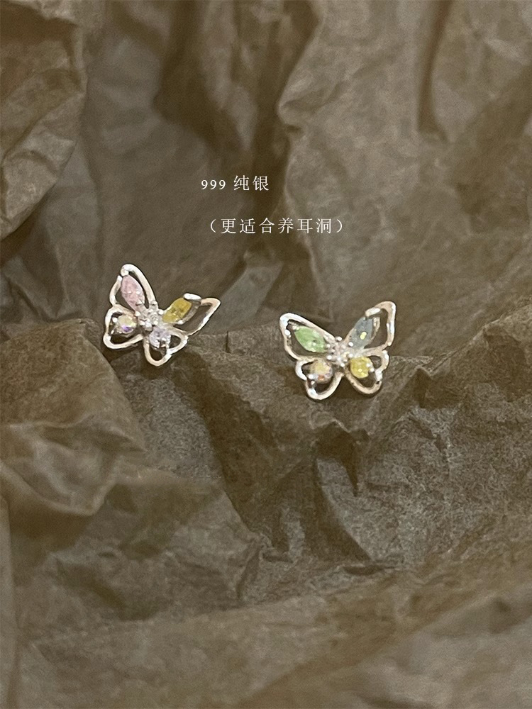Surprise 999純銀蝶耳釘耳骨釘女性独特の高級感イヤリングが洗練されています。