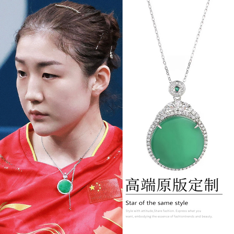 人気【七夕】陳夢同ネックレス女性緑玉髄陽緑円形ペンダント無事ブランド玉ネックレス