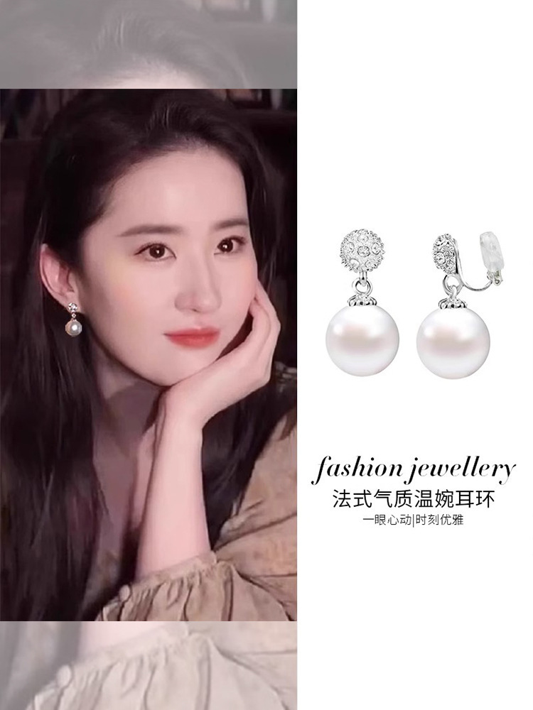 劉亦菲は同じタイプの真珠の耳の挟みの耳の穴がない女性のfeverの博主と同じタイプの純銀の耳の釘の2024の新型です。